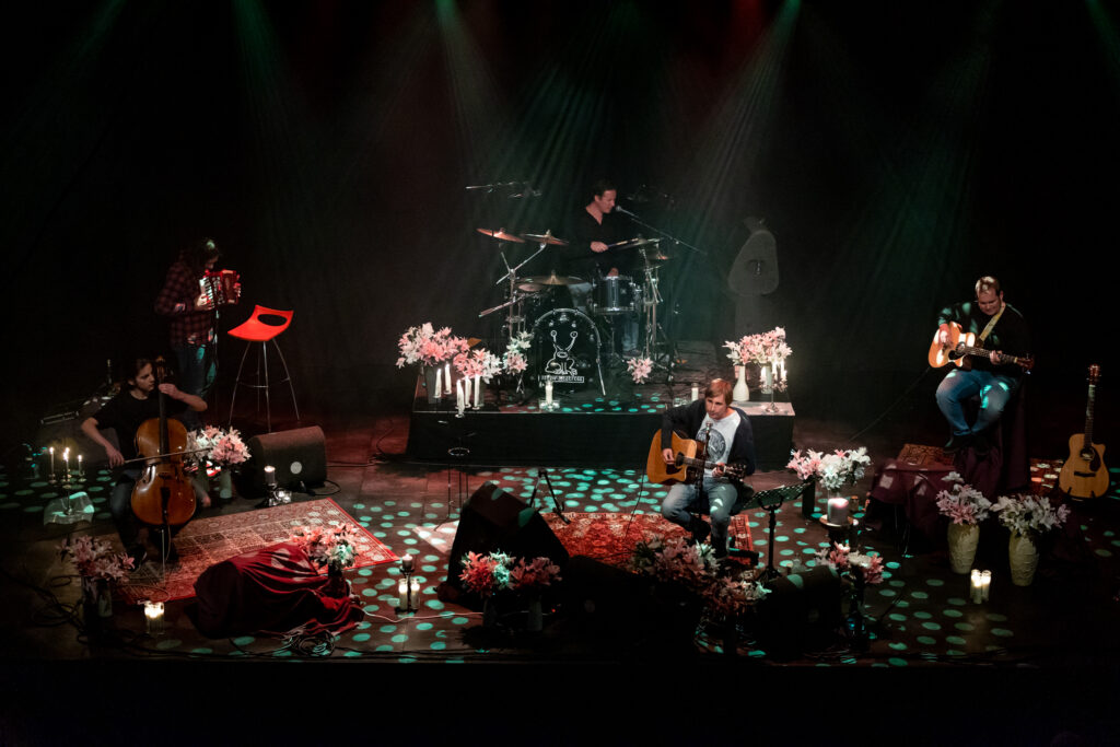 Alles klopt: de cello, de kaarsen, de bloemen en natuurlijk de stem,